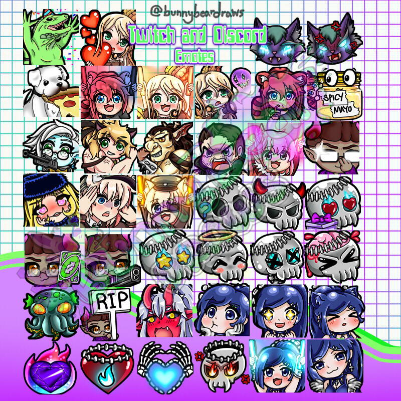$5 per Emote$15 for Animated Emotes or Stickers$25 for Sub Badges$15 for Flairs